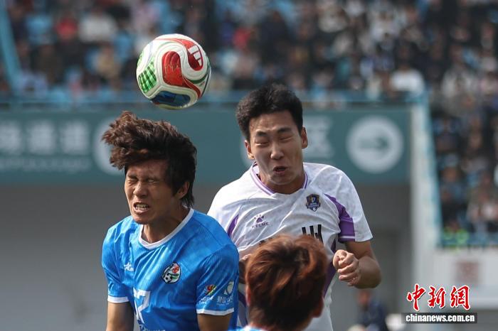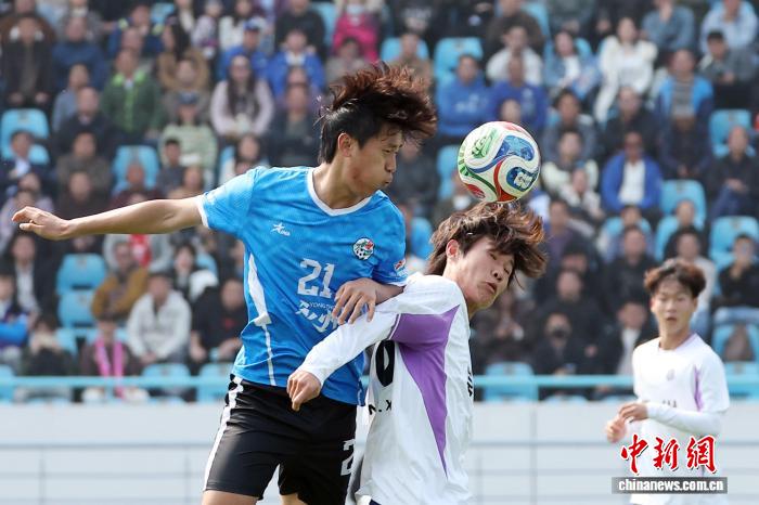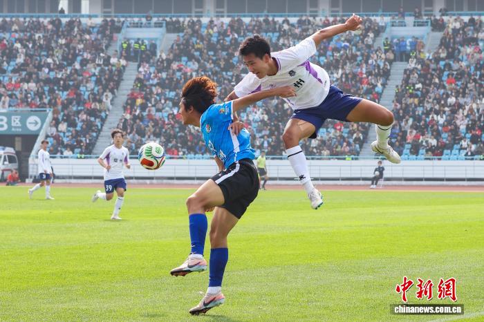3月25日,江苏常州取湖北永州脚球情义交换赛正在常州奥体主旨运动场举办,终究,常州队1比0打败永州队。角逐进程中,两边球员拼劲统统,不雅赛球迷热中飞腾。图为常州队球员(黑衣)取永州队球员(蓝衣)正在角逐中拼抢。中新社记者 泱波 摄