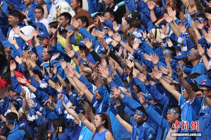 3月25日,江苏常州取湖北永州脚球友情交换赛正在常州奥体重心运动场举办,终究,常州队1比0打败永州队。角逐进程中,两边球员拼劲一概,不雅赛球迷亲昵飞腾。图为去自永州的啦啦队为角逐添油助势。中新社记者 泱波 摄