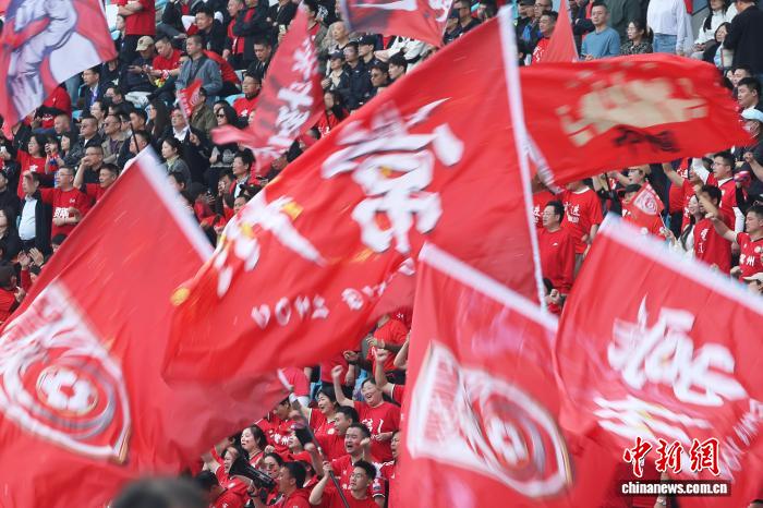 3月25日,江苏常州取湖北永州脚球交谊交换赛正在常州奥体核心运动场举办,终究,常州队1比0打败永州队。角逐进程中,两边球员拼劲美满,不雅赛球迷豪情上涨。图为常州队球迷为角逐摇旗大喊。中新社记者 泱波 摄